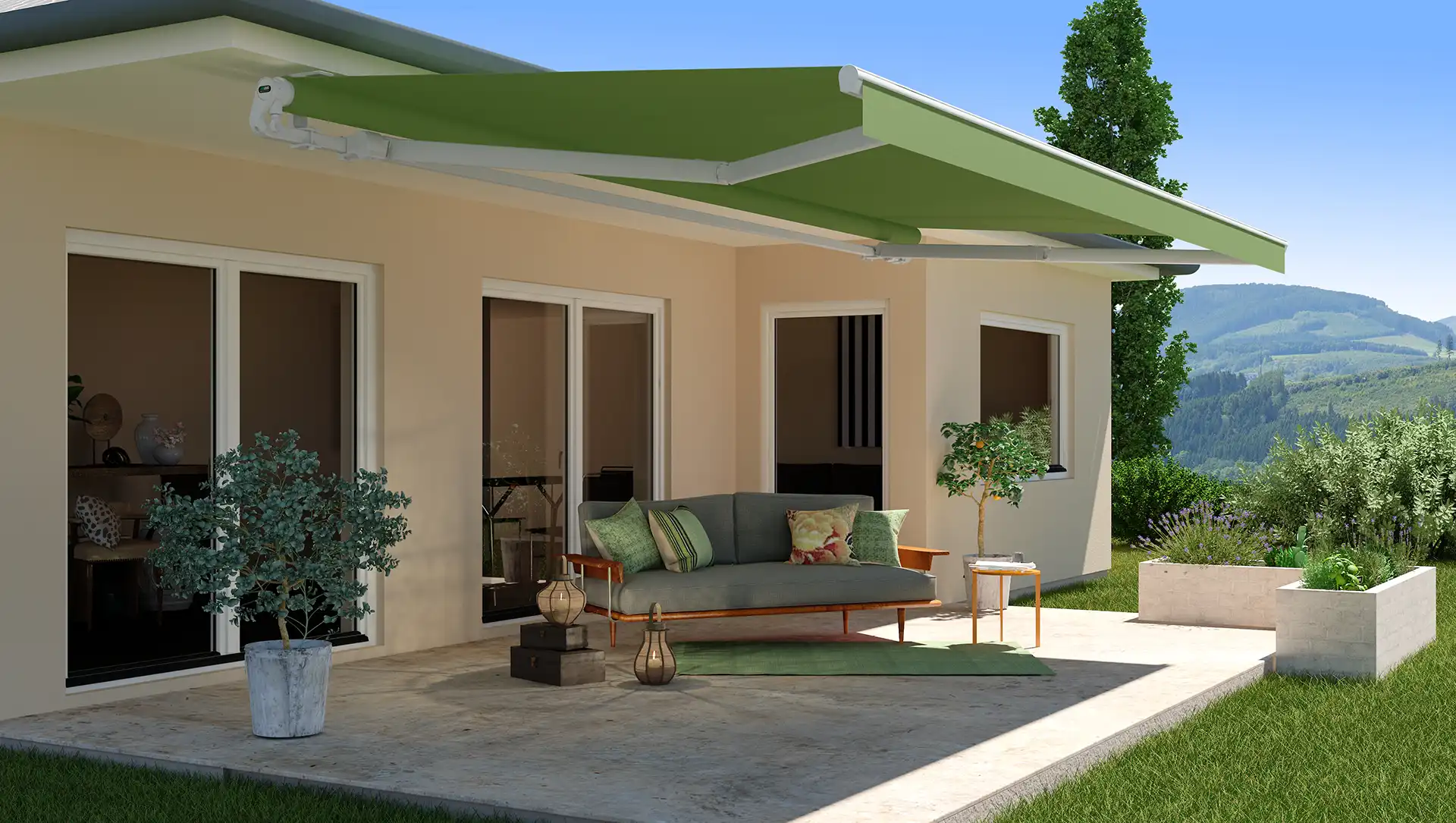 Markisen schaffen durch ihre schattenspendende Wirkung einen eleganten Rückzugsort im Freien – perfekt zum Entspannen und Genießen.