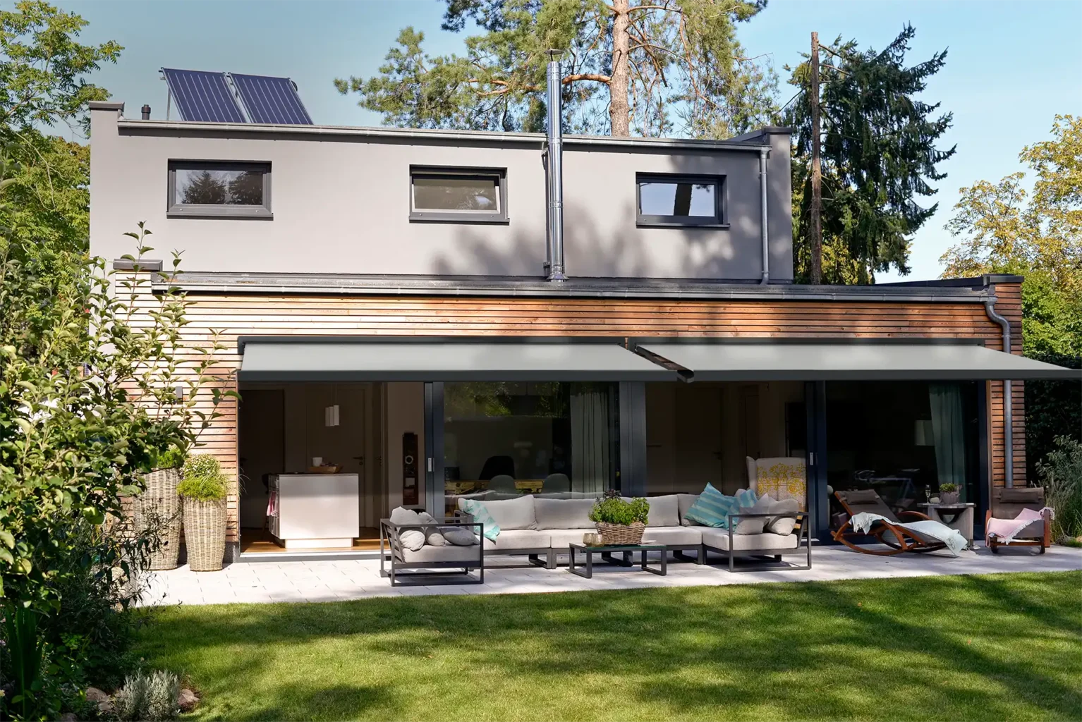 Markisen schaffen durch ihre schattenspendende Wirkung einen eleganten Rückzugsort im Freien – perfekt zum Entspannen und Genießen.
