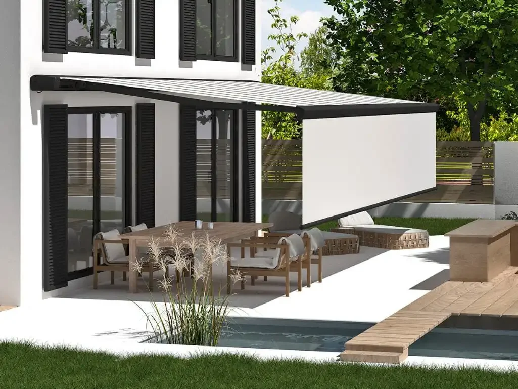 Markisen schaffen durch ihre schattenspendende Wirkung einen eleganten Rückzugsort im Freien – perfekt zum Entspannen und Genießen.