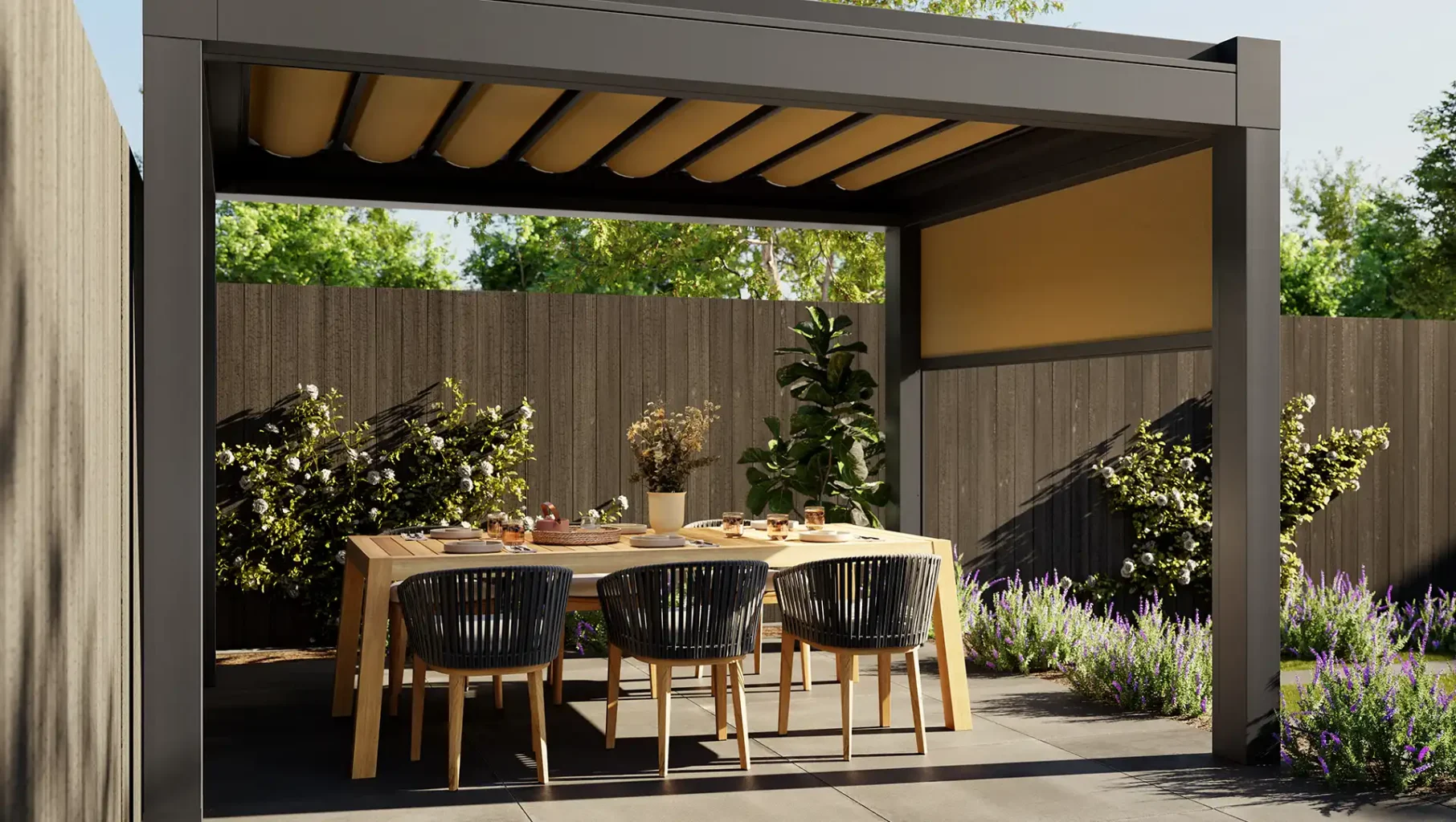 Genießen Sie entspannt die Sonne, wann Sie wollen: Stoffdächer bieten flexiblen Sonnenschutz und schaffen ein einladendes Ambiente im Freien.